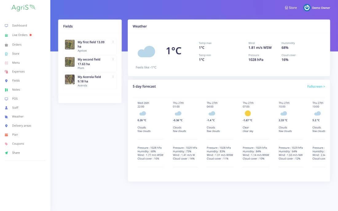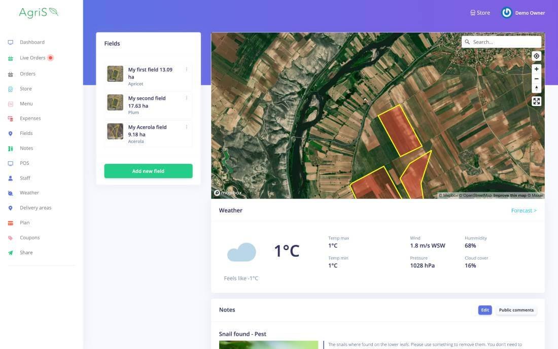 Add your fields on the map, and gain quick insides for current weather and pending tasks.