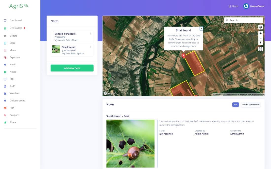 Add notes from the office or while field scouting.