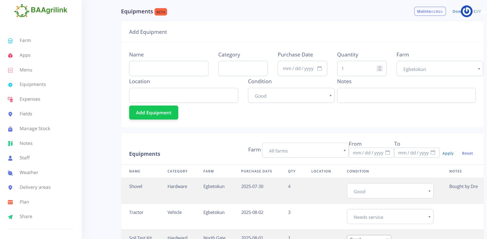 Take Stock & manage your farm equipment and schedule them for maintenance